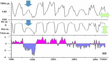 co-ordinates well enough with “El Nino” dynamics, which influence on the structure of general atmospheric circulation and develop under the influence