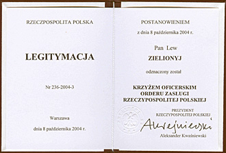 РАН Льву Матвеевичу Зеленому Oфицерский крест за заслуги в установлении научных контактов между Россией и Польшей.