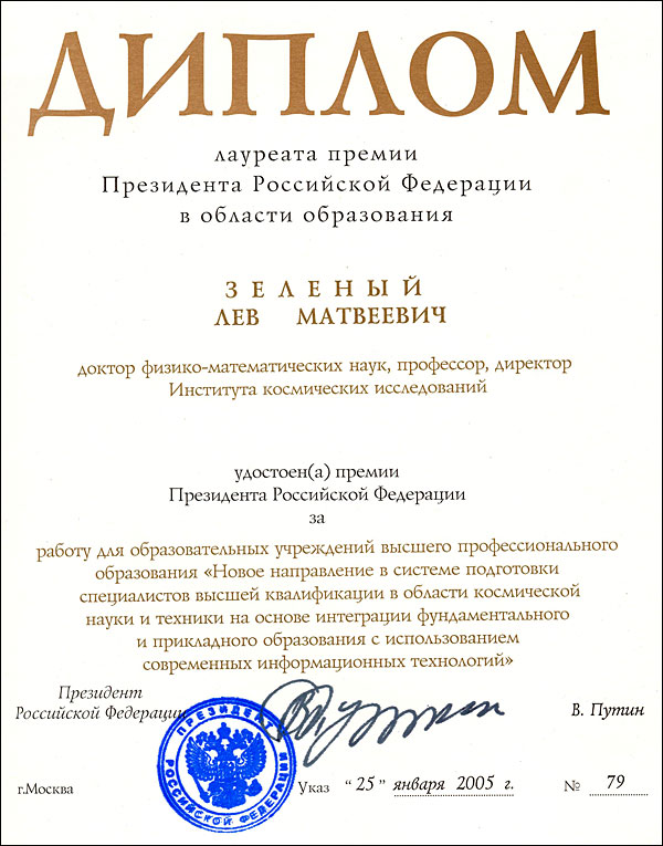 Лев Матвеевич Зеленый и Альберт Абубакирович Галеев - лауреаты премии Президента Российской Федерации в области образования! Поздравляем!!!