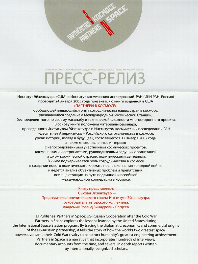 24 января 2005 года в ИКИ РАН состоялся семинар «Космос: дилемма двойного использования и Международная Инициатива Института Эйзенхауэра».