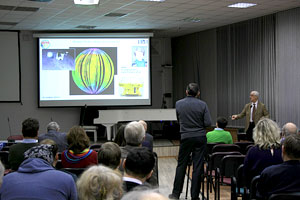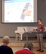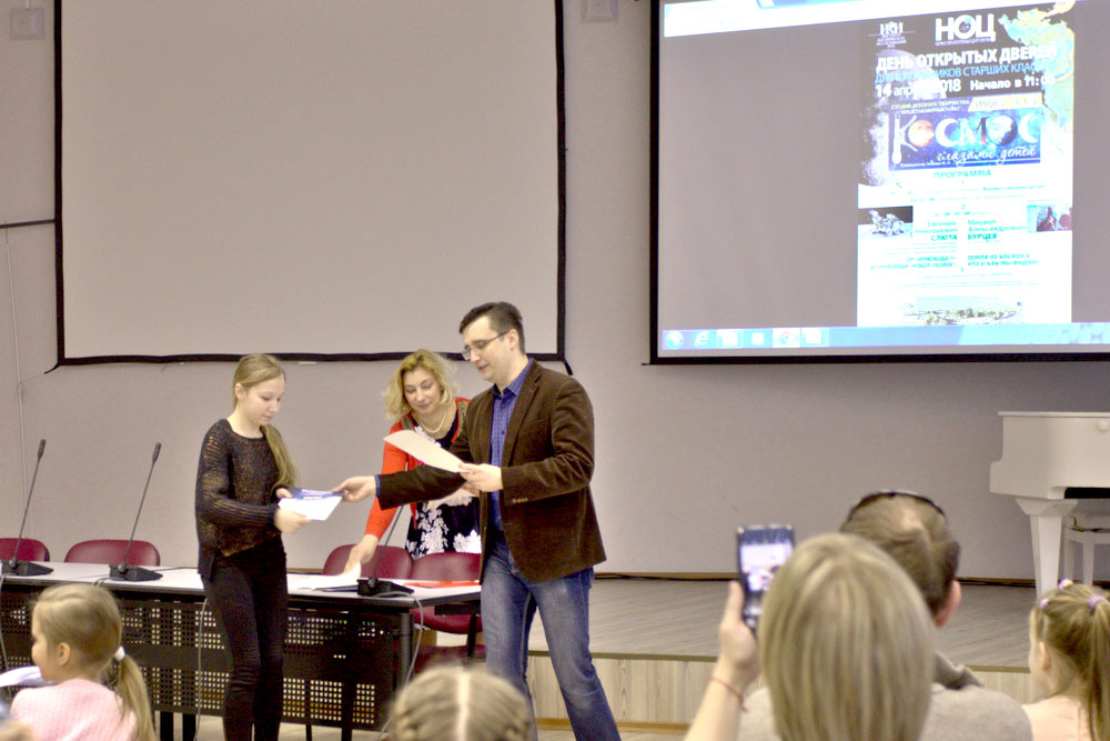 Экскурсию по музею провел Сергей Васильевич Васюков, сотрудник Научно-образовательного центра ИКИ РАН. Лекции для участников прочитали Андрей Михайлович Садовский, заведующий НОЦ, и Максим Сергеевич Долгоносов, старший научный сотрудник отдела физики космической плазмы. Заместитель декана факультета физики НИУ ВШЭ Сергей Сергеевич Заварин рассказал об образовательной программе «Физика» и особенностях поступления на факультет в 2018 г.