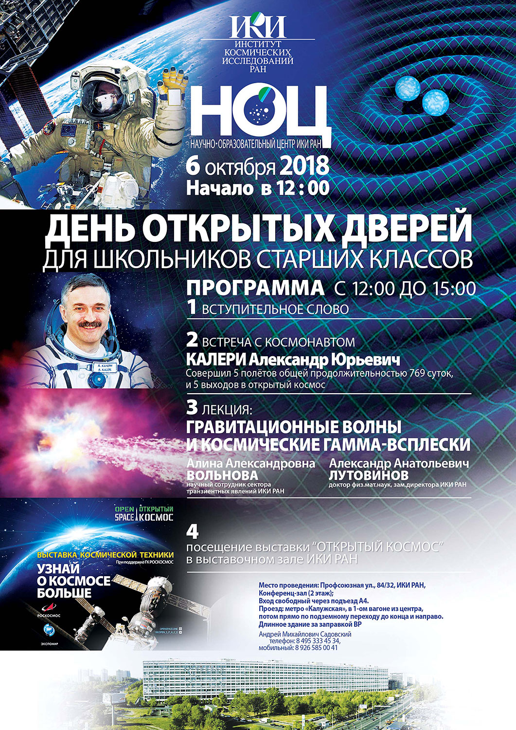 Музей Института, научно-образовательные лекции сотрудников ИКИ, а также презентацию факультета физики НИУ ВШЭ посетили более 170 учащихся и учителей школ Москвы и