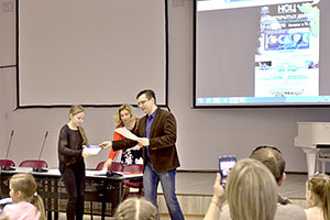 Дипломы I степени в номинации «Лучшая работа среди юных участников Форума» были вручены Дмитрию Шмидту (1 класс. г. Челябинск) за доклад «От притчи к инженерному решению. Распределение нагрузки» и Ольге Плешковой (6 класс. г. Волгодонск) за мультимедийный проект «Прикосновение к Марсу».