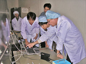 | Входной контроль сканирующего узла МСАСИ © ИКИ РАН | Магнитные испытания МСАСИ в Институте космических исследований и астронавтики (Institute of Space and Astronautical Science, Япония) © ИКИ РАН |