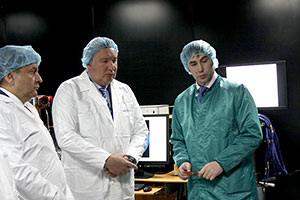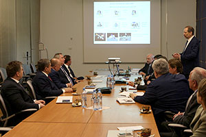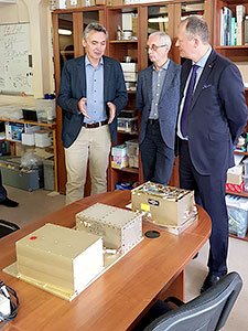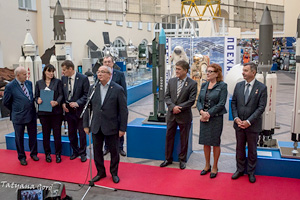 В ходе визита на НПО им. С.А. Лавочкина (НПОЛ) участникам встречи был представлен участок электрических испытаний, где в настоящее время в чистовой камере находится лётное изделие «Спектр-РГ». На данном этапе космический аппарат с рентгеновскими телескопами ART-XC и eROSITA собран, проводятся комплексные испытания.