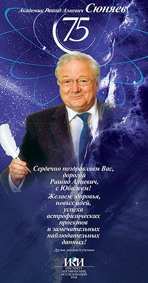 1 марта исполняется 75 лет Рашиду Алиевичу СЮНЯЕВУ — одному из лидеров мировой астрофизики, автору фундаментальных результатов, вошедших в учебники и университетские курсы теоретической астрофизики и физической космологии во всем мире.