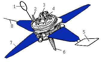 Power supply of the board instrumentation is provided by solar batteries (4 plane panels unfolding when taken to the orbit; with the 6 m span) and floating battery. The system of temperature control is active; the side surface of the hermetically sealed body is used as a radiation surface; the rest of the mainframe is protected by the shield-vacuum thermal insulation. The board radio complex ensures the receipt of radio commands from the Earth, measurement of the orbit parameters and transmission of telemetric information. The telemetric system is equipped with the memory facility for registering information between radio sessions and for subsequent its transmission to the Earth during another communication session.
