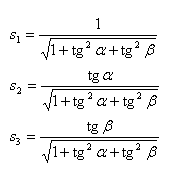 Using α, β angles the Sun direction (which coincides with XG axis) cosines in the S/C coordinate system can be calculated: