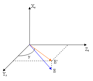 γ is an angle between YS axis and projection of the North Pole of Ecliptic onto XSYS plane.