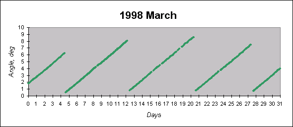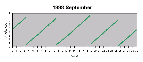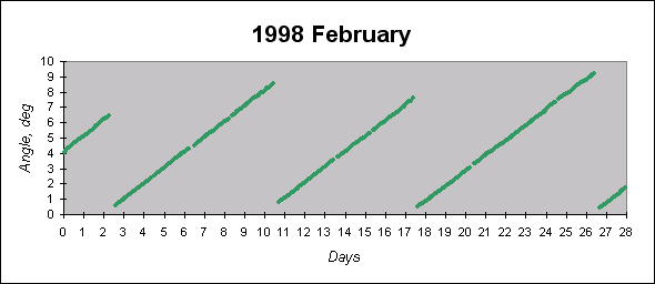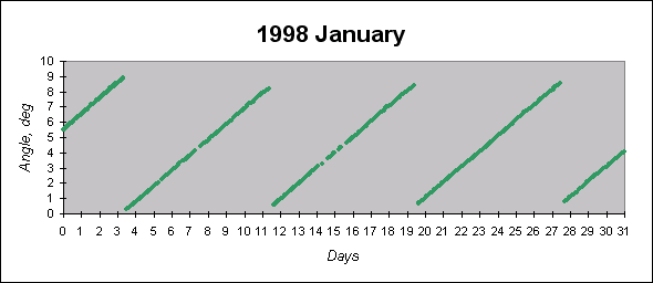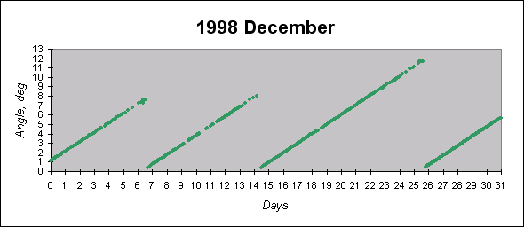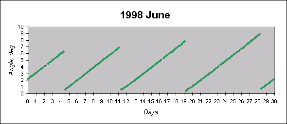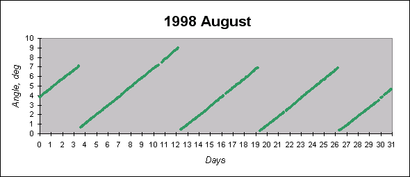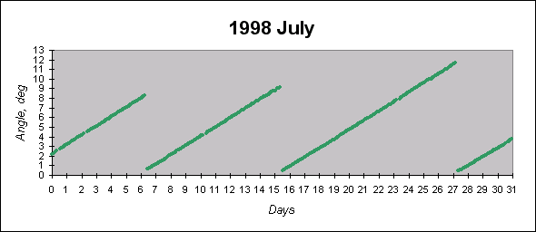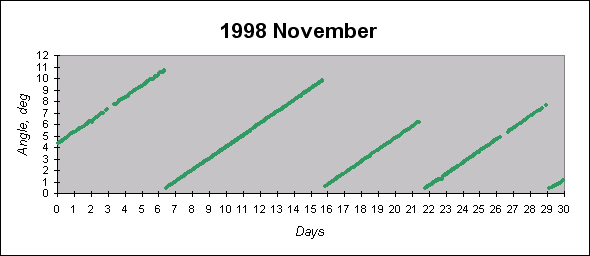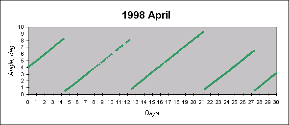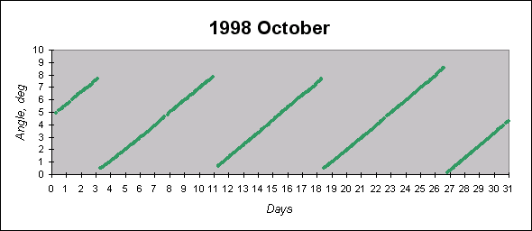 To see graphs showing angles between the angular momentum vector (which is close to the principal inertia axis) and the Sun direction