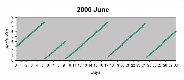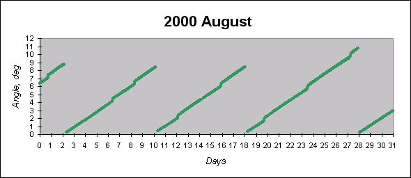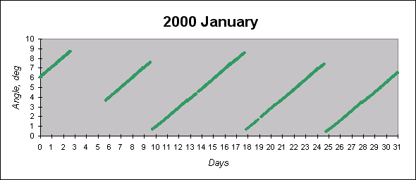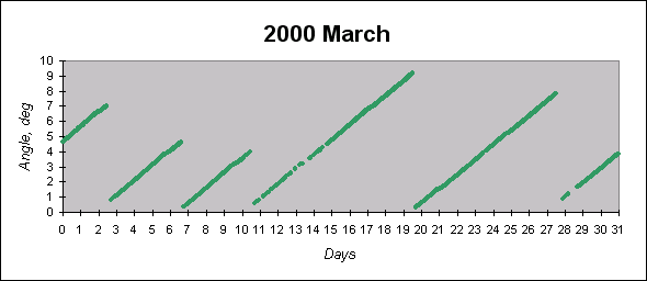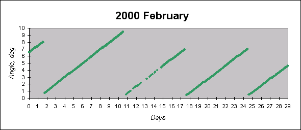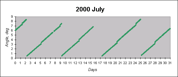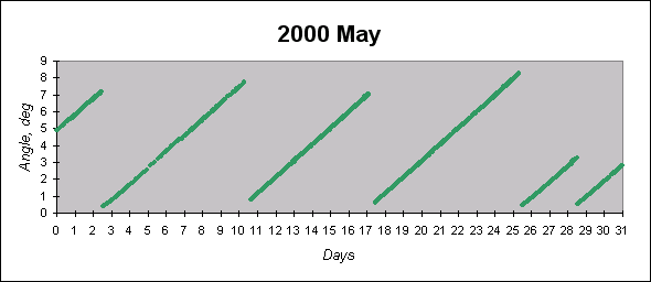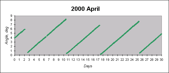 To see graphs showing angles between the angular momentum vector (which is close to the principal inertia axis) and the Sun direction