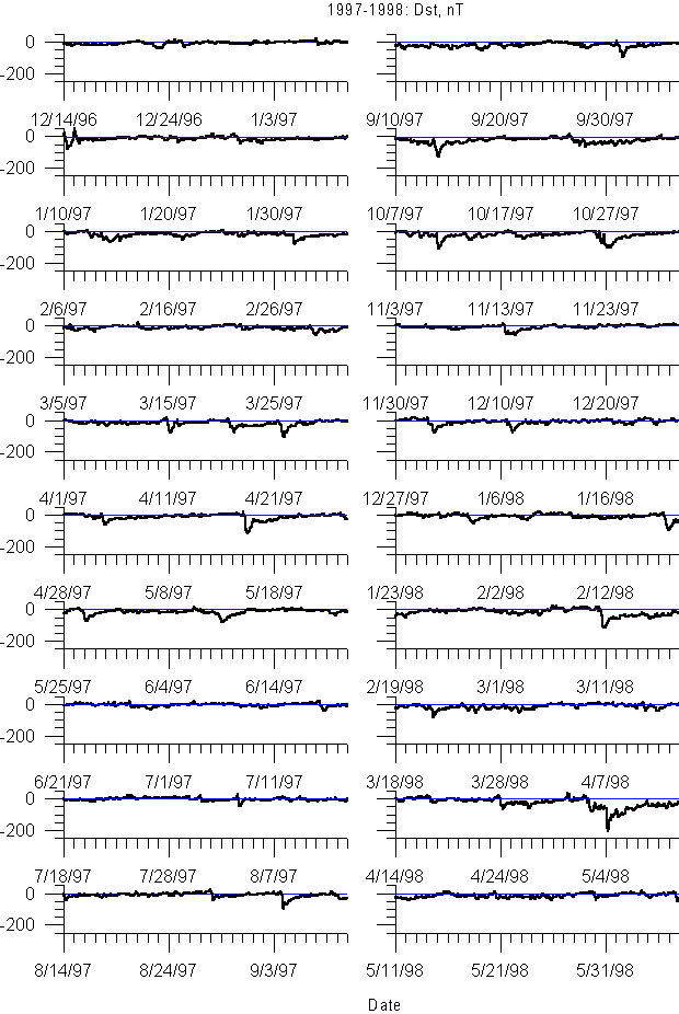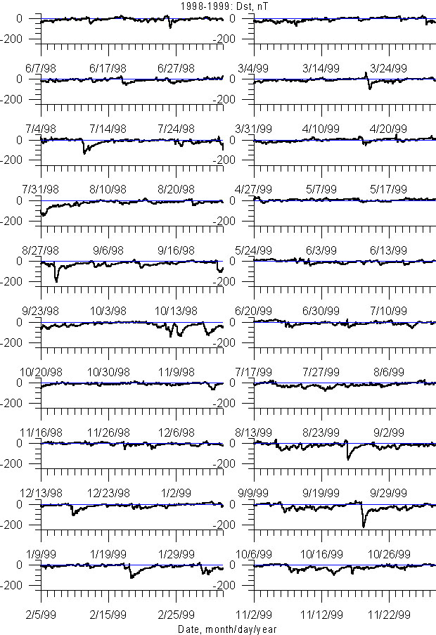 среднечасовых значений Dst индекса (http://spidr.ngdc.noaa.gov/)