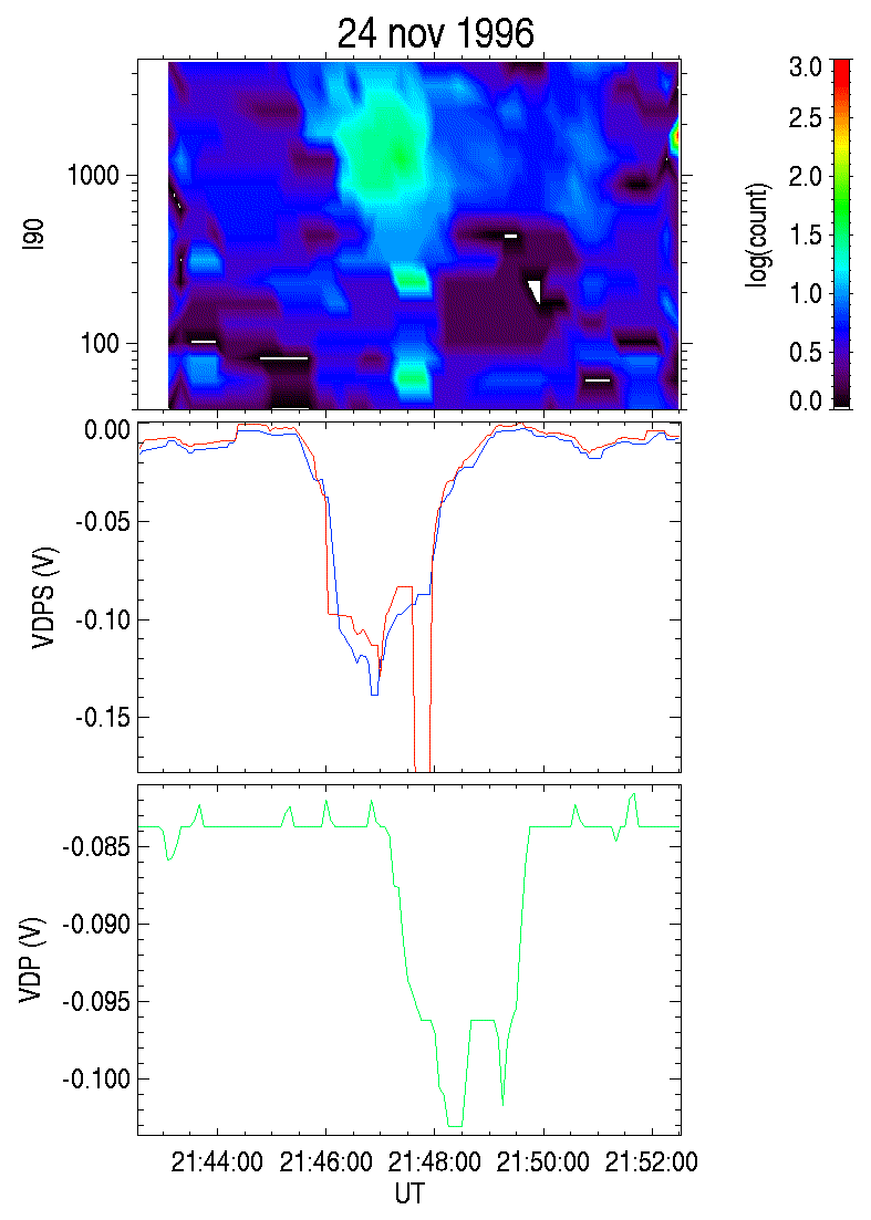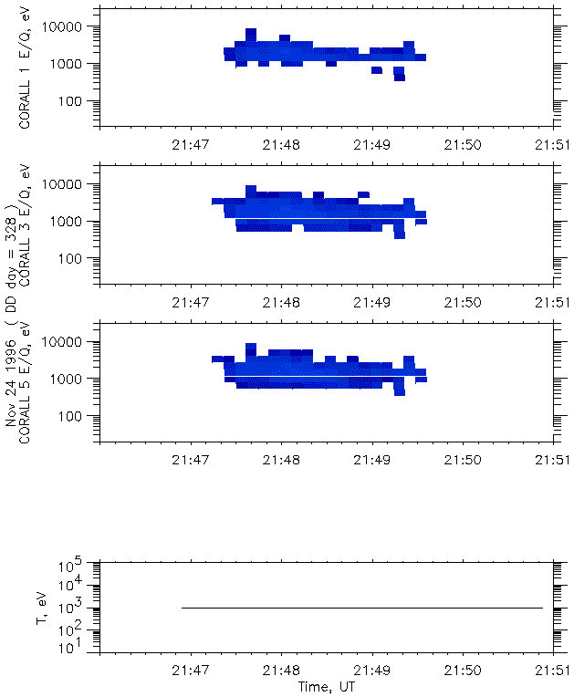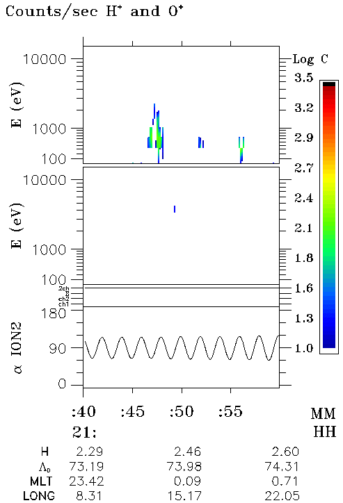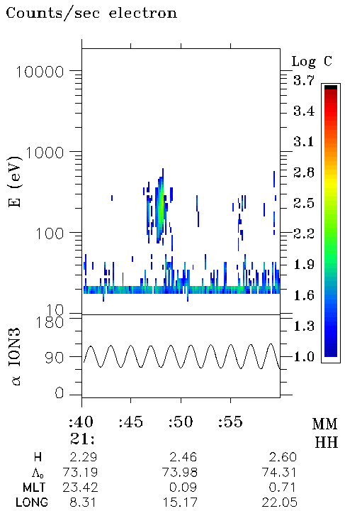 It should be pointed that Auroral and Tail probes detected particles of almost the same energy. Here is a picture representing the respective positions of the satellites in GSE coordinate system. The field lines on which Auroral and Tail probes were located, being traced to 100 km altitude, appear to have a very close position in the ILAT-MLT frame, and close to the IMAGE longitude.