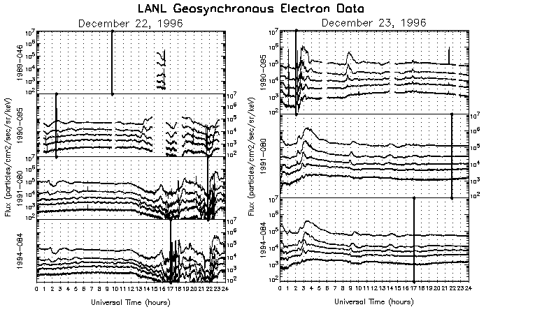LANL geosynchronous electron data (see Fig.3) and ion data (not shown) show some flux increases during the substorms identified as well as some bursts in between.
