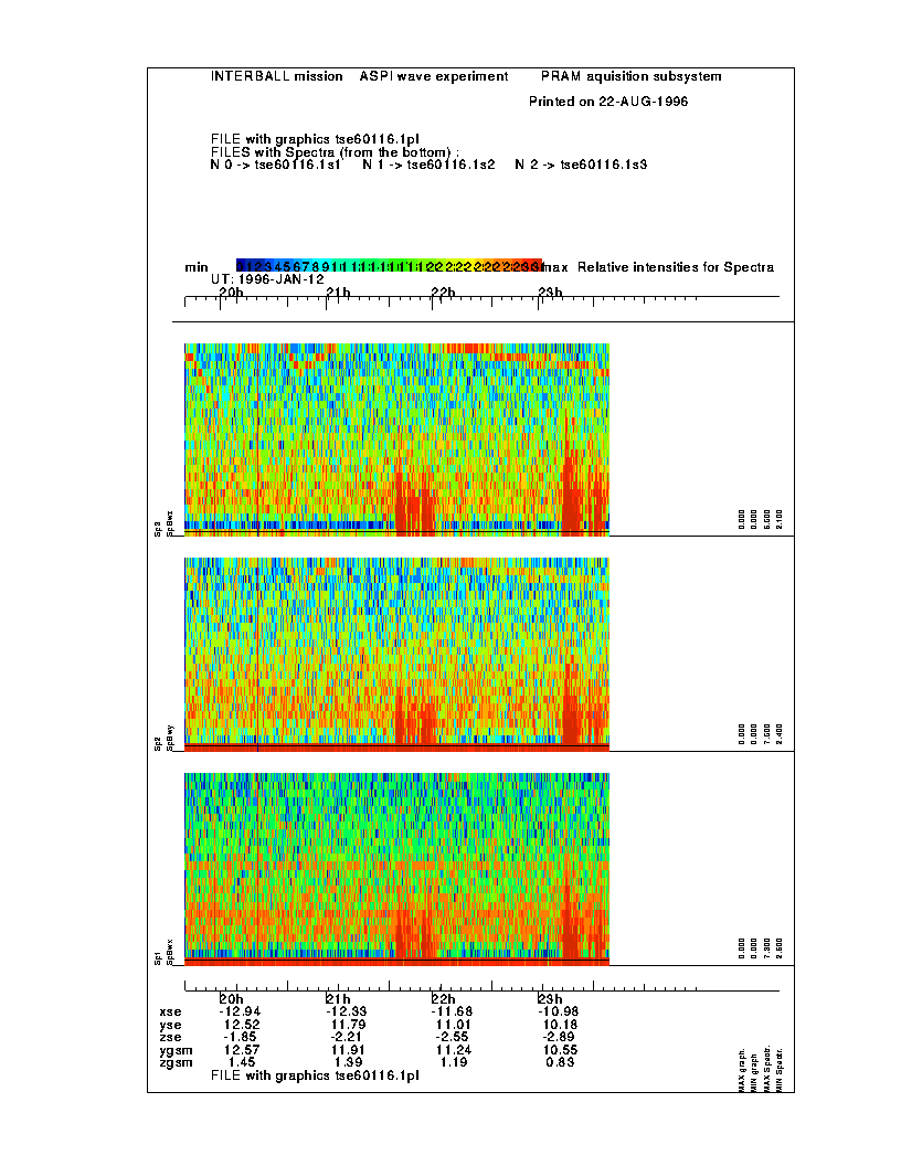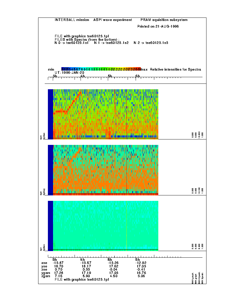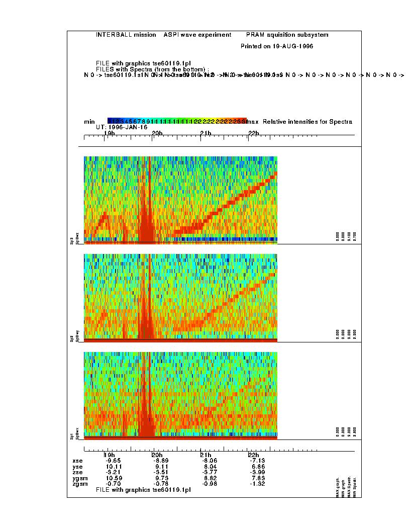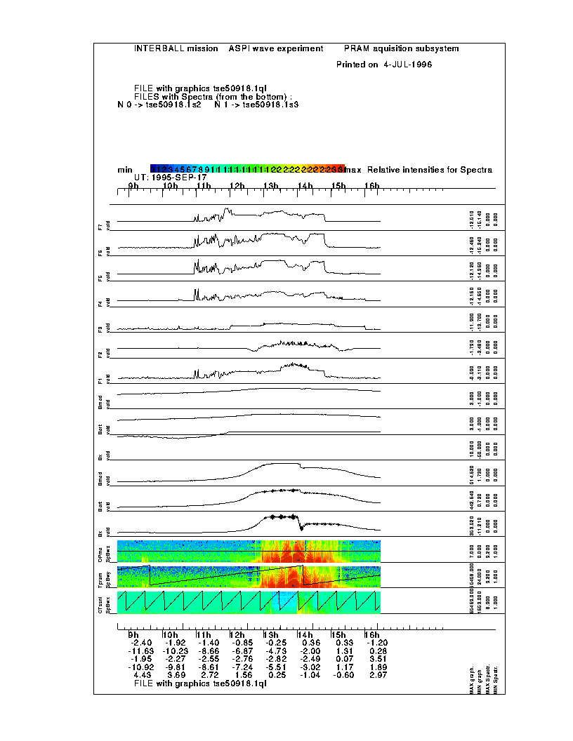 Examples of the raw magnetic field information, obtained with the MIF-M instrument/ASPI wave complex.