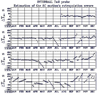 The errors estimation of the INTERBALL Tail probe motion extrapolation outside the measuring time interval |