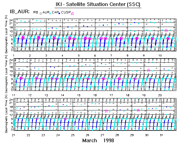 Geomagnetic local time in the IB_AUR position as a function of the UT