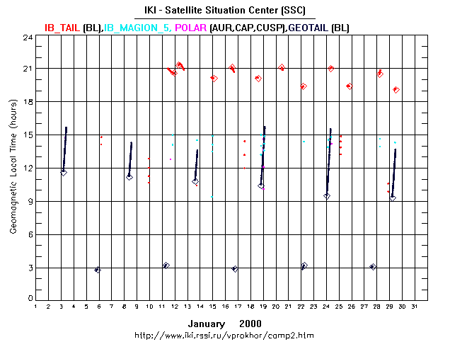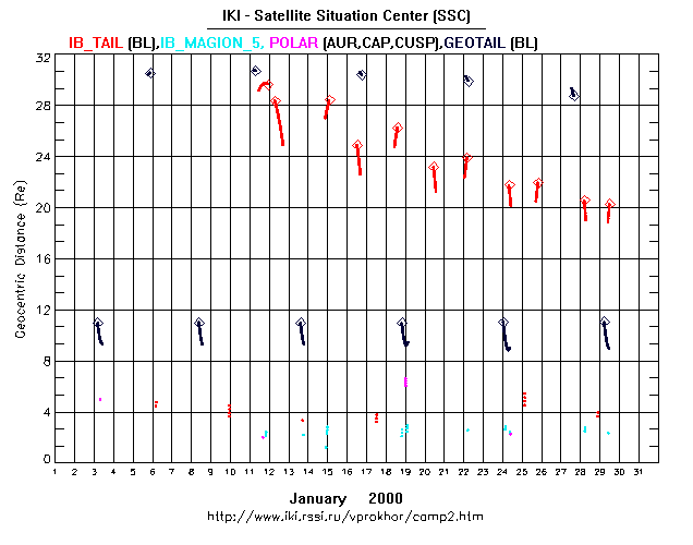 Four spacecraft: INTERBALL Tail probe (IB_TAIL), MAGION 5 (IB_MAG5), POLAR(NASA/ISAS), GEOTAIL (NASA) are considered.