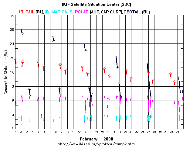 Four spacecraft: INTERBALL Tail probe (IB_TAIL), MAGION 5 (IB_MAG5), POLAR(NASA/ISAS), GEOTAIL (NASA) are considered.