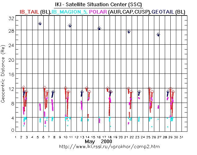 Four spacecraft: INTERBALL Tail probe (IB_TAIL), MAGION 5 (IB_MAG5), POLAR(NASA/ISAS), GEOTAIL (NASA) are considered.