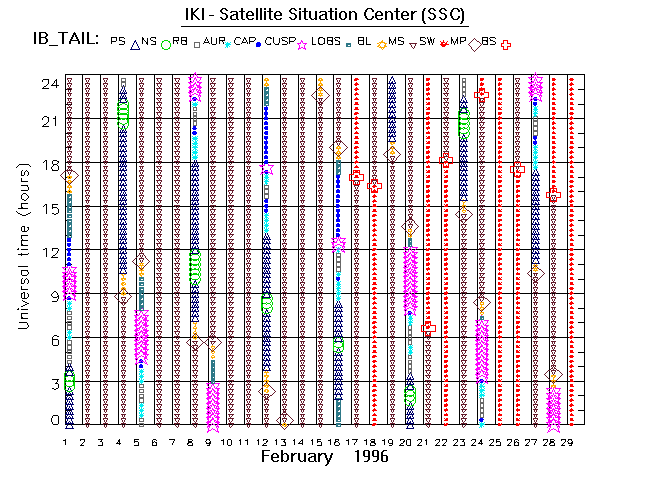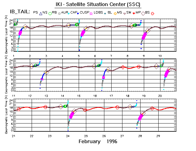 Geomagnetic local time in the IB_TAIL position as a function of the UT