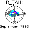 Geomagnetic local time in the IB_TAIL position as a function of the UT