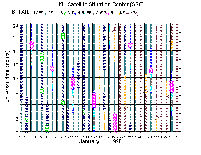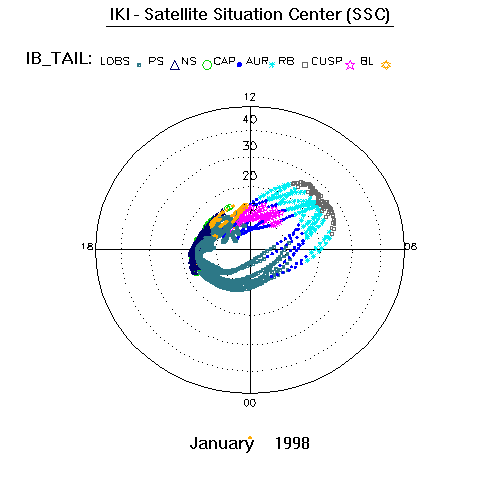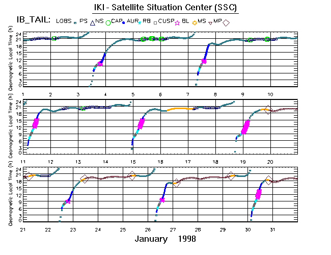 Geomagnetic local time in the IB_TAIL position as a function of the UT