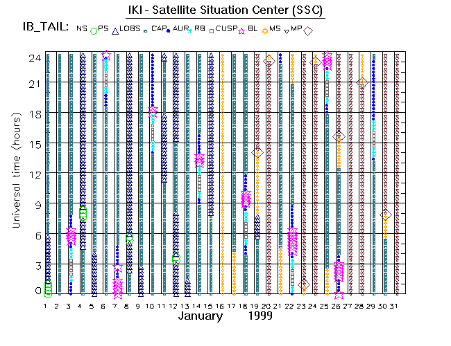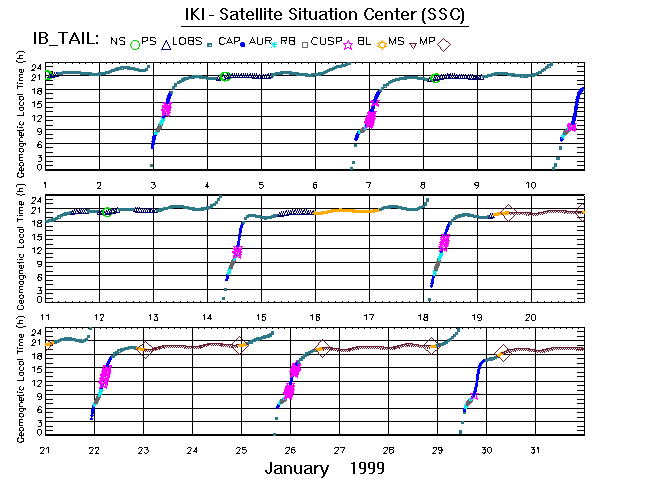 Geomagnetic local time in the IB_TAIL position as a function of the UT