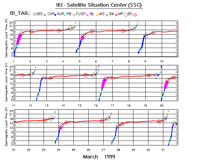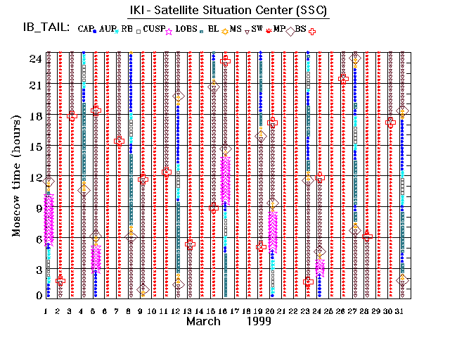 The IB_TAIL geocentric distance as a function of the Moscow time (MT = UT + 3h)