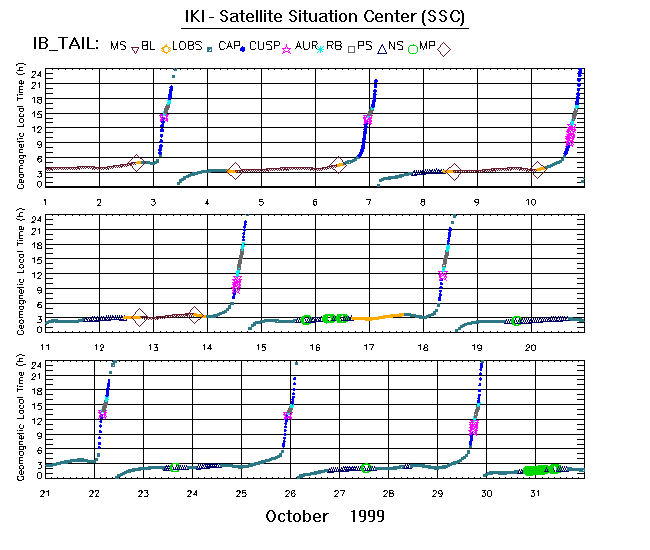 Geomagnetic local time in the IB_TAIL position as a function of the UT