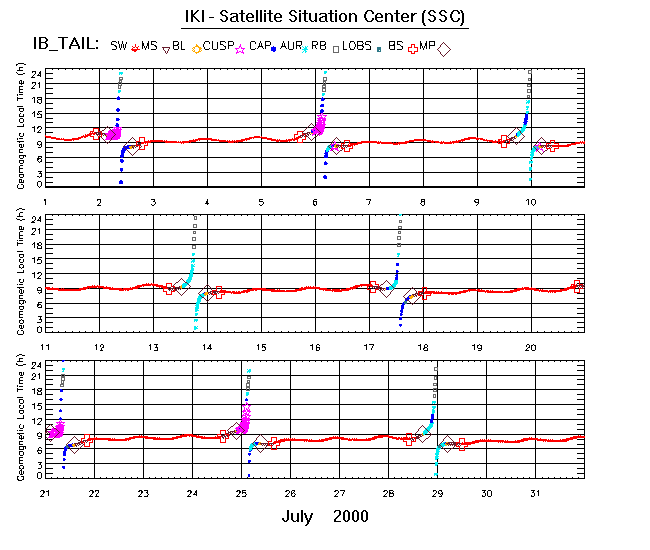 Geomagnetic local time in the IB_TAIL position as a function of the UT